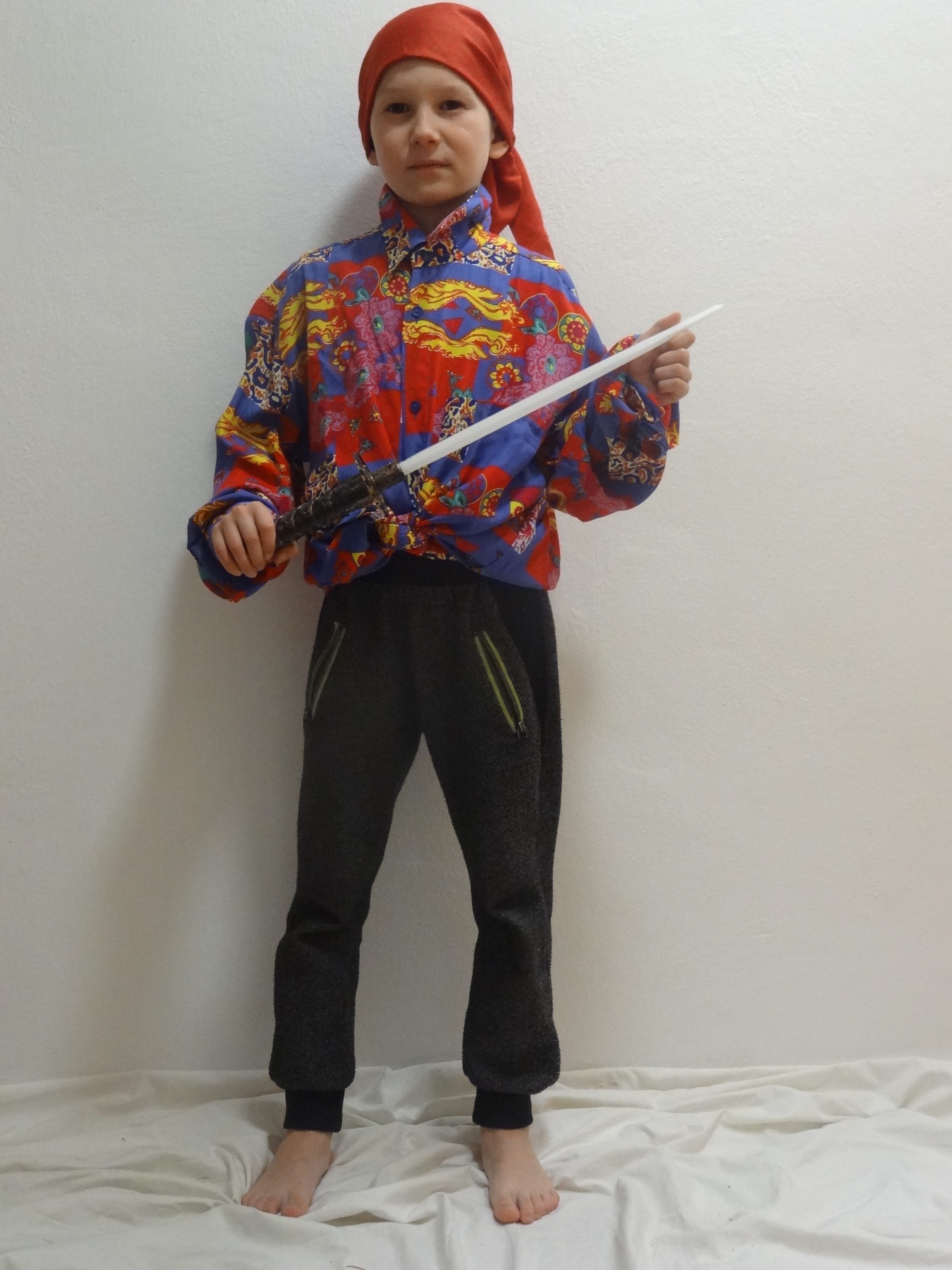 Kostým obsahuje farebnú košeľu a červenú šatku