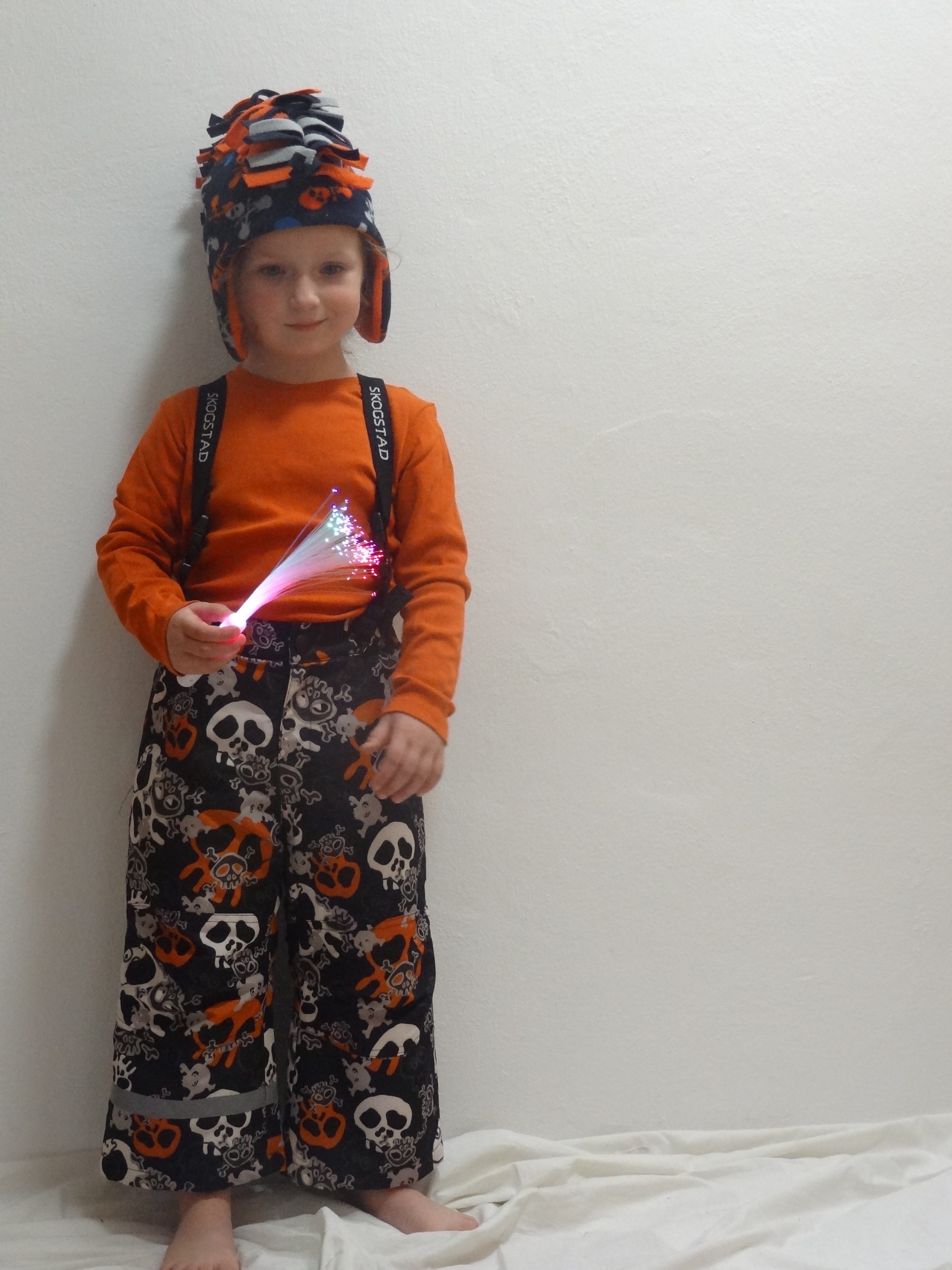 Kostým obsahuje šušťakové nohavice na traky, tričko a čiapku s aplikáciou lebiek