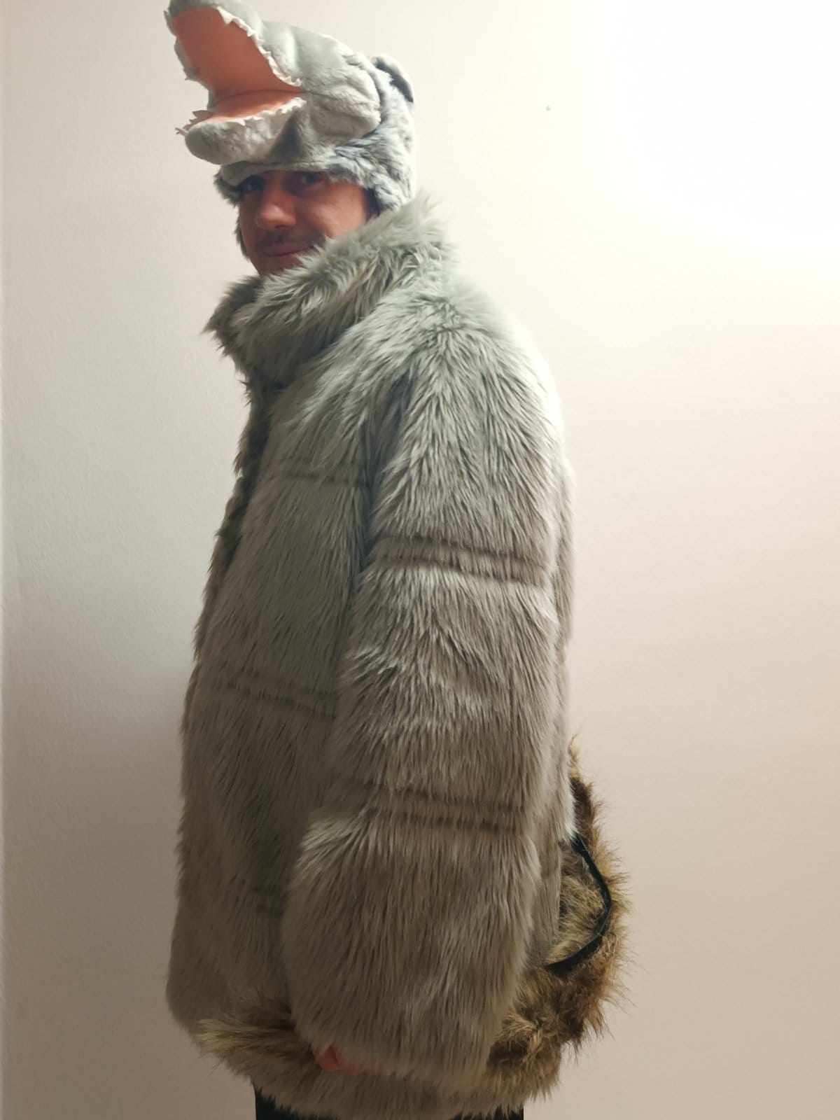 Kostým obsahuje kožuch, chvost a čiapku vlka